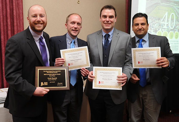 Scott Barrett, at left, won first place in the Best Sports Front Page category for "40 Love" during the 2017 Rhode Island Press Association Awards Banquet.